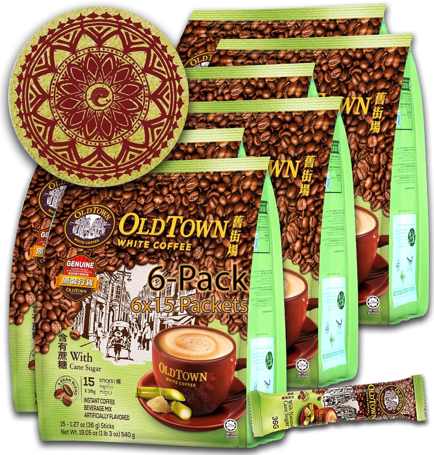 OldTown is Malaysia's most popular White Coffee mix. On top of perfect blend with 3 types of premium beans, and brewed with the same roasting process as when it was first created. All this to ensure that coffee lovers are able to enjoy the best white coffee every time, and there is a product to suite all different coffee lovers over the world! A perfect smooth blend of the original white coffee. Rich, creamy and aromatic, it has a heightened lingering mouth. Package Comes with an Random Flavor Old Town Coffee Sample Packet. Ready to Mix, Great for Travel, Now you can ask for a cup of hot water and enjoy great taste of coffee even on airplane, or home "Old Town White Coffee" Is Trusted Popular Brand more than 14 countries Since 19th Century, Each Instant Mixed Coffee Packets Includes Non Dairy Creamer Perfect For A Cup Of Coffee At The Convenience At Anywhere, 6-pack Coffee Contains 90 Packets total. ( 90 instant Packets), with an Random Flavor Old Town Coffee Sample Packet and a Cork Coaster Malaysian #1 Coffee with Halal-Certified. Fresh guaranteed. We sends high frequent and small inventory for ensuring the expiration date of this product At Least 6+ Months Away. Other Flavors of Coffee instant and MilkTea Instant : Cane Sugar, Hazelnut, Less Sugar, Milk Tea, Extra Rich, Salted Caramel etc..