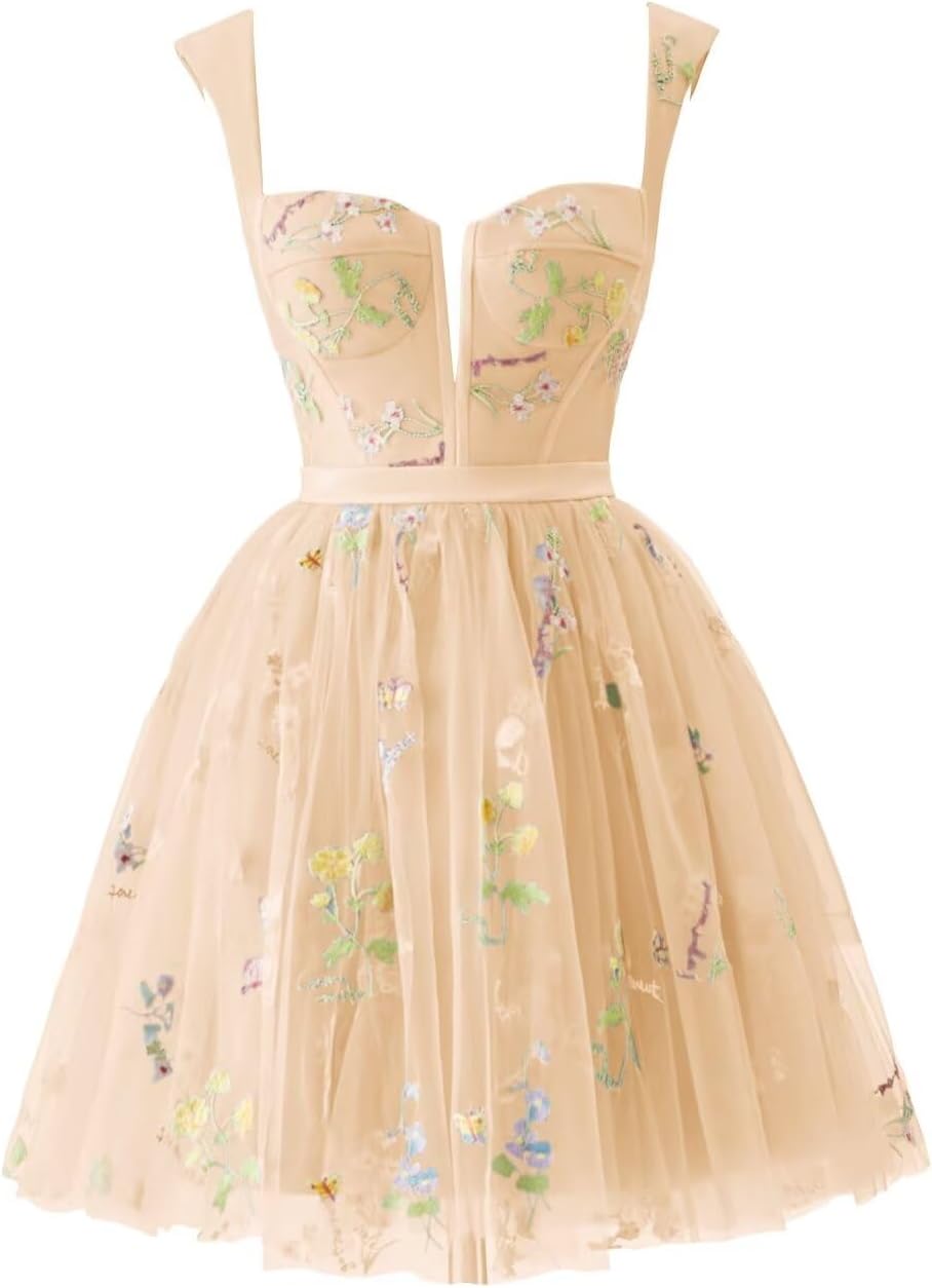| Fabric Type | Tulle homecoming dress flower embroidery spaghetti straps aline pleated |