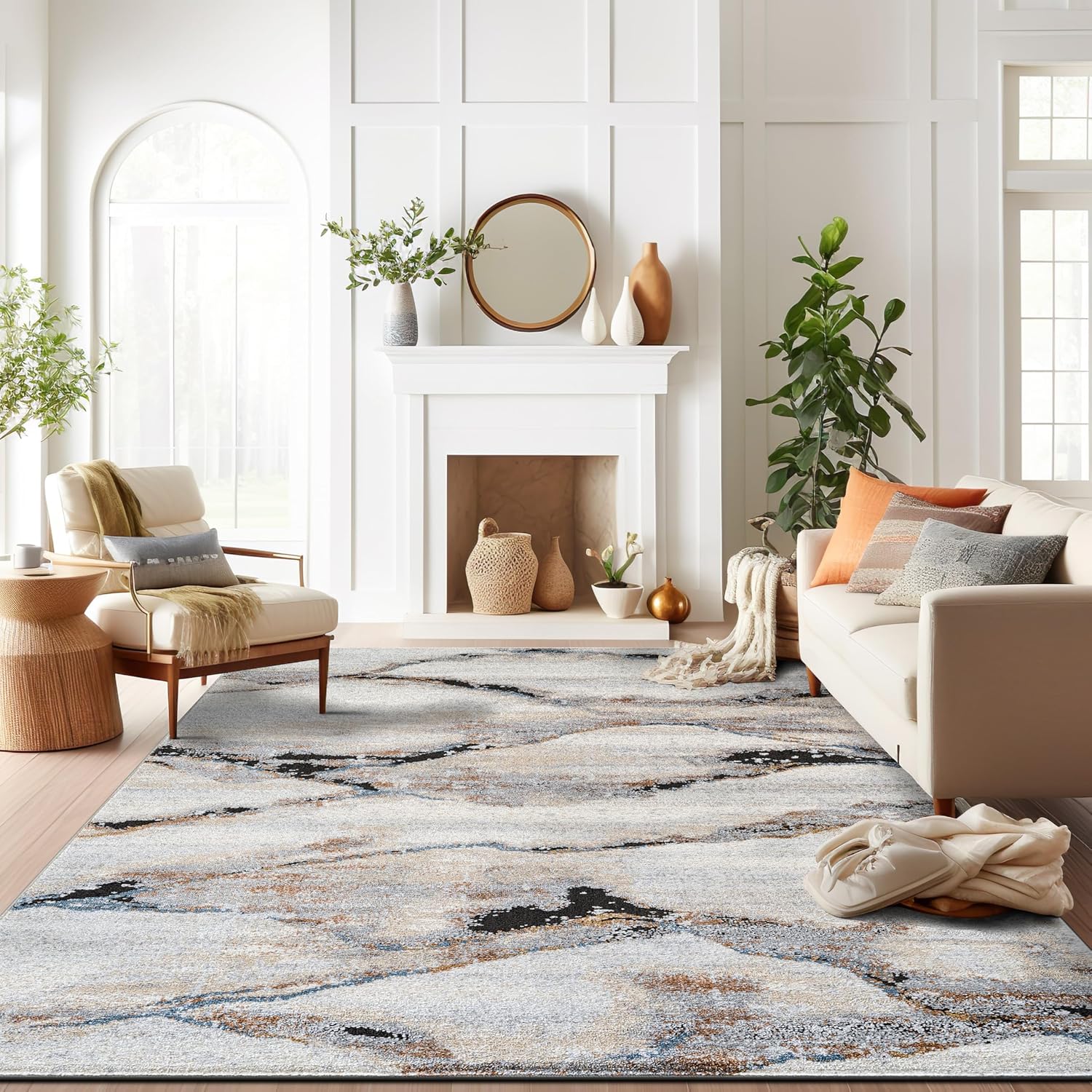 The Marble Swirl Area Rug combines modern style with everyday durability, making it ideal for busy households. Crafted from a polypropylene and polyester blend with a sturdy jute backing, this low-pile rug resists stains, fading, and everyday wear while providing a soft surface underfoot. OEKO-TEX® certified and safe for kids and pets, this versatile indoor rug enhances living rooms, bedrooms, dining areas, and home offices. Designed for high-traffic spaces, it’s easy to care for with regular vacuuming and occasional spot cleaning using mild detergent and water. The rug arrives rolled and securely packaged for convenient setup. For added comfort, stability, and floor protection, we recommend using a rug pad.