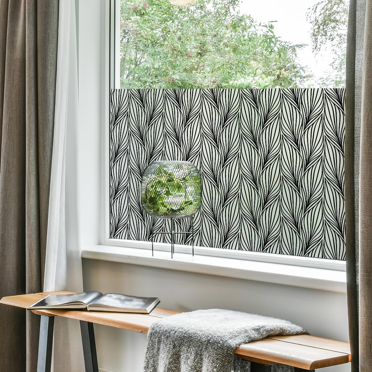 Opaque sticker for your windows and bathroom. This opaque and private window sticker features a chic palm tree design measuring H 40 x L 100 cm. Tips for installation: 1. Cut the required length (take a little wider). 2. Strongly moisten glass. 3. Peel off the sticker from the backing paper and position it on the damp disc. 4. Scrape from the centre to the outside to remove water and air bubbles. 5. The moisture allows it to move for a perfect position. 6. Allow to dry. 7. Use a cutter to cut off the strips that protrude over the glass. You can also protect your privacy when you are in your house. IMPORTANT: Once applied to a window, this sticker absorbs 15% of visible light and transmits 85% of visible light.