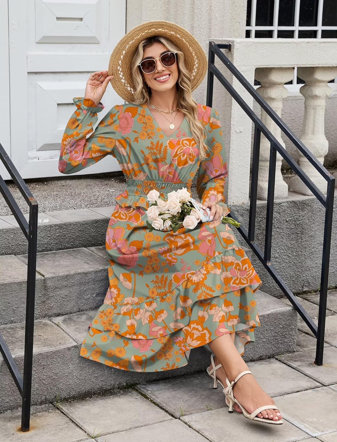 Womens Fall 2025 Casual Floral Midi Maxi Dresses Puffed Long Sleeve V Neck Flowy A Line Dress Women Boho Beach Dress Floral Maxi Dress FEATURES: Floral Fall Maxi Dresses for Women 2025,Fall Dress for women, Long Sleeve Dress; V Neck Dress; Long Fall Dresses Outfits, Floral Maxi Dress; Floral Dresses for Women; Smocked Elastic Waist; Ruffle Dress; Tiered Ruffle Dress; Long Maxi Dresses With Pockets; Flowy A Line Dress; Flowy Dress; Floral Boho Dress; Casual Maxi Dress DESIGNS: Floral Maxi Dress; Smocked Dress,Ruffle Dress, Tiered Ruffle Dress; Long Dresses With Pockets; A Line Dress; FLowy Elastic High Waist Dress; Beach Dress; Boho Dresses For Women 2025; Floral Dress Womens Empire Waist Maxi Dresses V Neck Flowy Dress Long Sleeve Maxi Dress for Women;Floral Dress for Women;Boho Dress for Women;Flowy Dresses for Women;Womens Puff Sleeve Dress;A Line Dresses for Women;Tiered V-Neck Dress for Women;Party Dresses for Women;Pleated Dress for Women